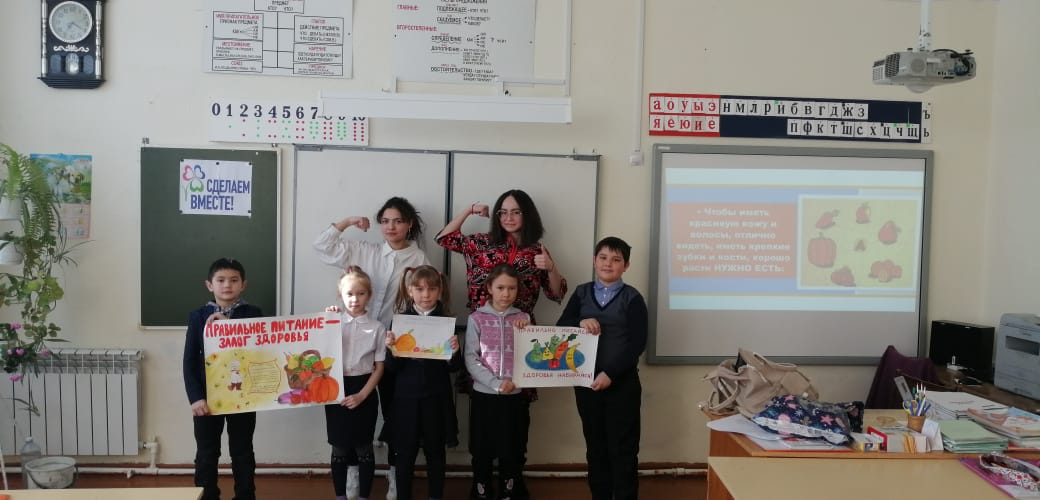 18 марта 2022 года лидер Всероссийской акции «Сделаем вместе!», ученица 8 класса МБОУ «СОШ им.М.Фархутдинова с.Мичуринск» Шаранского района Республики Башкортостан Садырова Алсу подготовила и провела в 1-3 классах внеклассное мероприятие «Секреты правильного питания». Сегодня все хорошо знают, что полезно, а что вредно для нашего организма в питании. Но зачастую возникает желание съесть «что ни будь вкусненькое», которое незримым образом пагубно влияет на здоровье, а особенно здоровье подрастающего поколения.