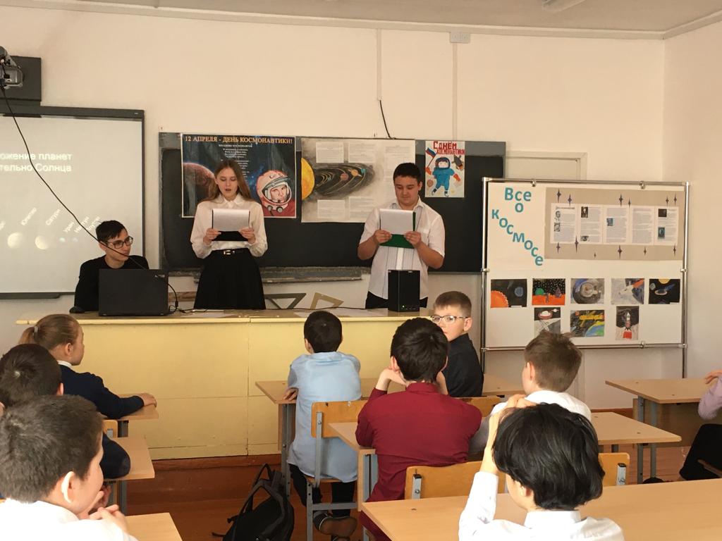 В целях развития познавательной и творческой активности учащихся, воспитания патриотизма у подрастающего поколения, уважения к достижениям нашей Родины 14 апреля 2022 г. в нашей школе было проведено внеклассное мероприятие «История космонавтики» и учащиеся 5,6,10 классов присоединились к открытому онлайн-уроку «История космонавтики» совместно с «Роскосмос».