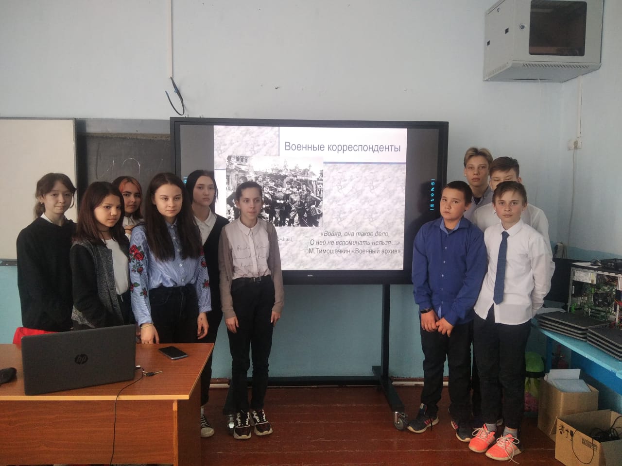 Сегодня, 28 апреля, 7 классе прошел урок "О военных корреспондентах". Ребятам рассказали о профессии корреспондента в сегодняшнее время и о работе корреспондентов в военное время. Какой ценой доставалась правда о войне, о жизни народа в годы страшной войны. Особенно популярной профессия стала во времена Великой Отечественной войны. Именно тогда многие поэты, писатели, корреспонденты, фотографы, дикторы записывались добровольцами и шли на фронт, выезжали в воинские части, госпитали и в освобожденные города. Военные корреспонденты сохранили летопись Великой Отечественной войны для потомков.