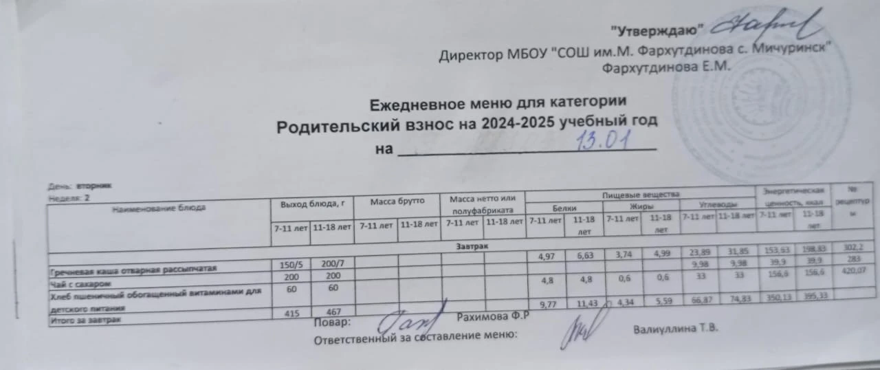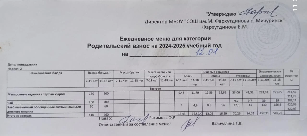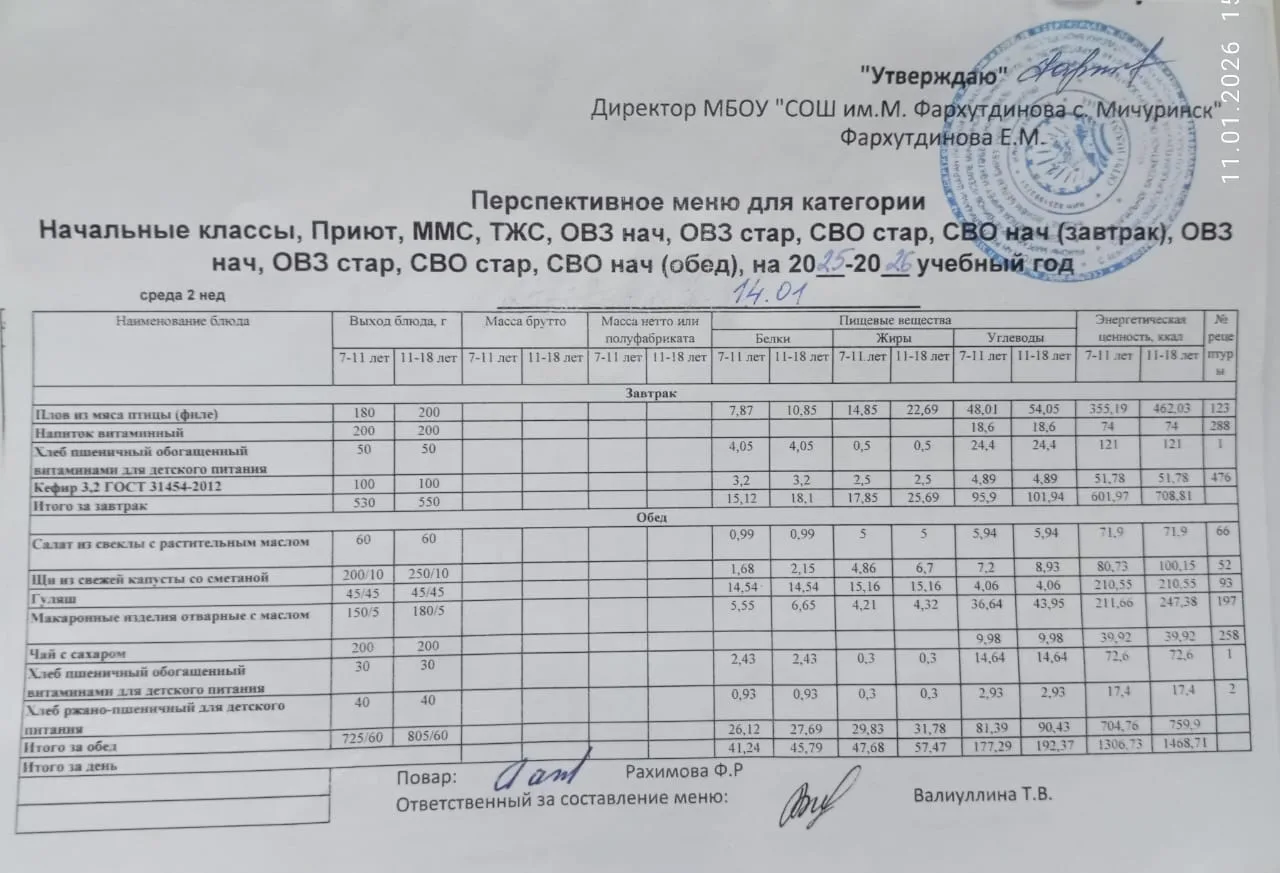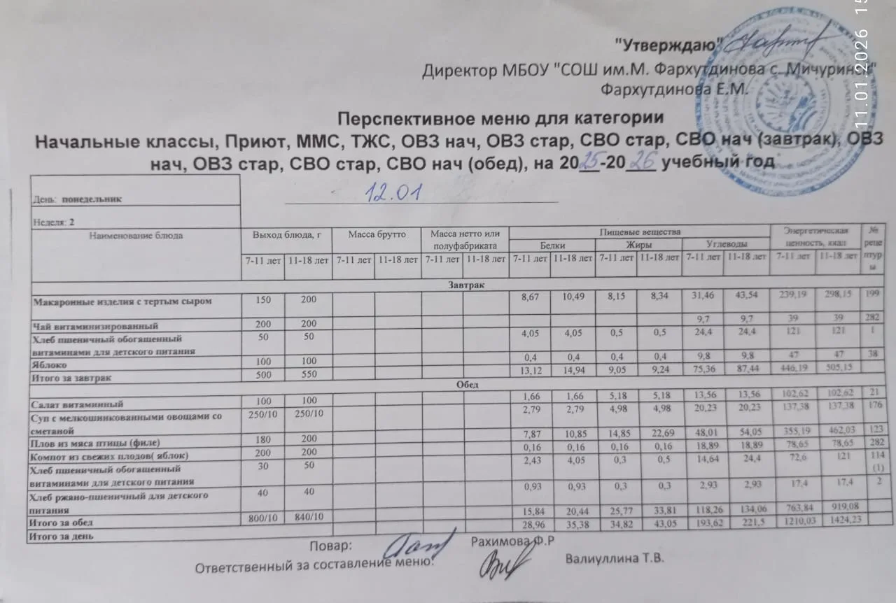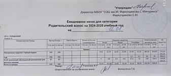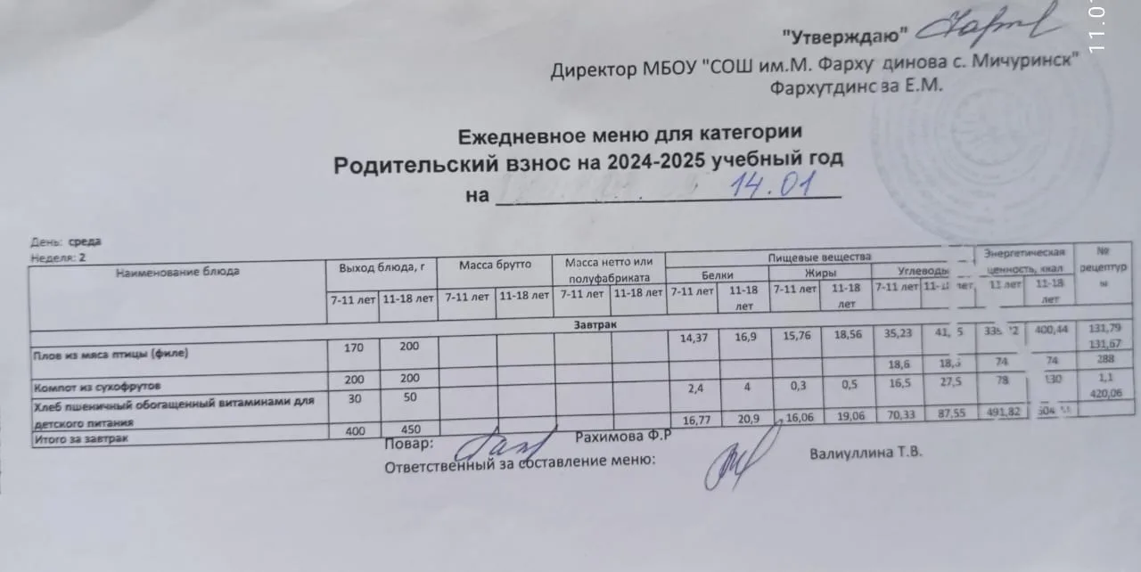 Стоимость школьного питания
