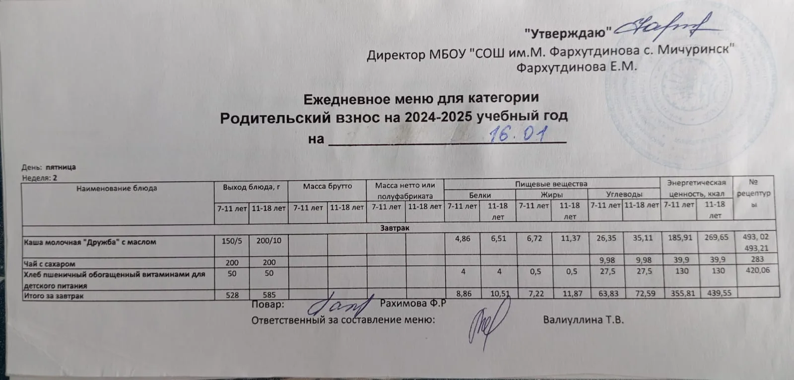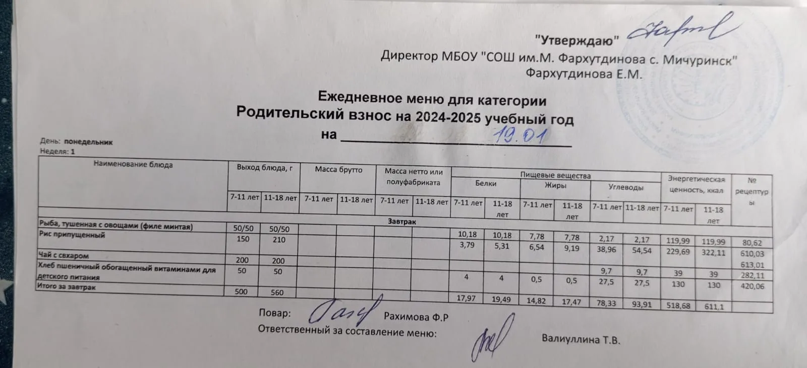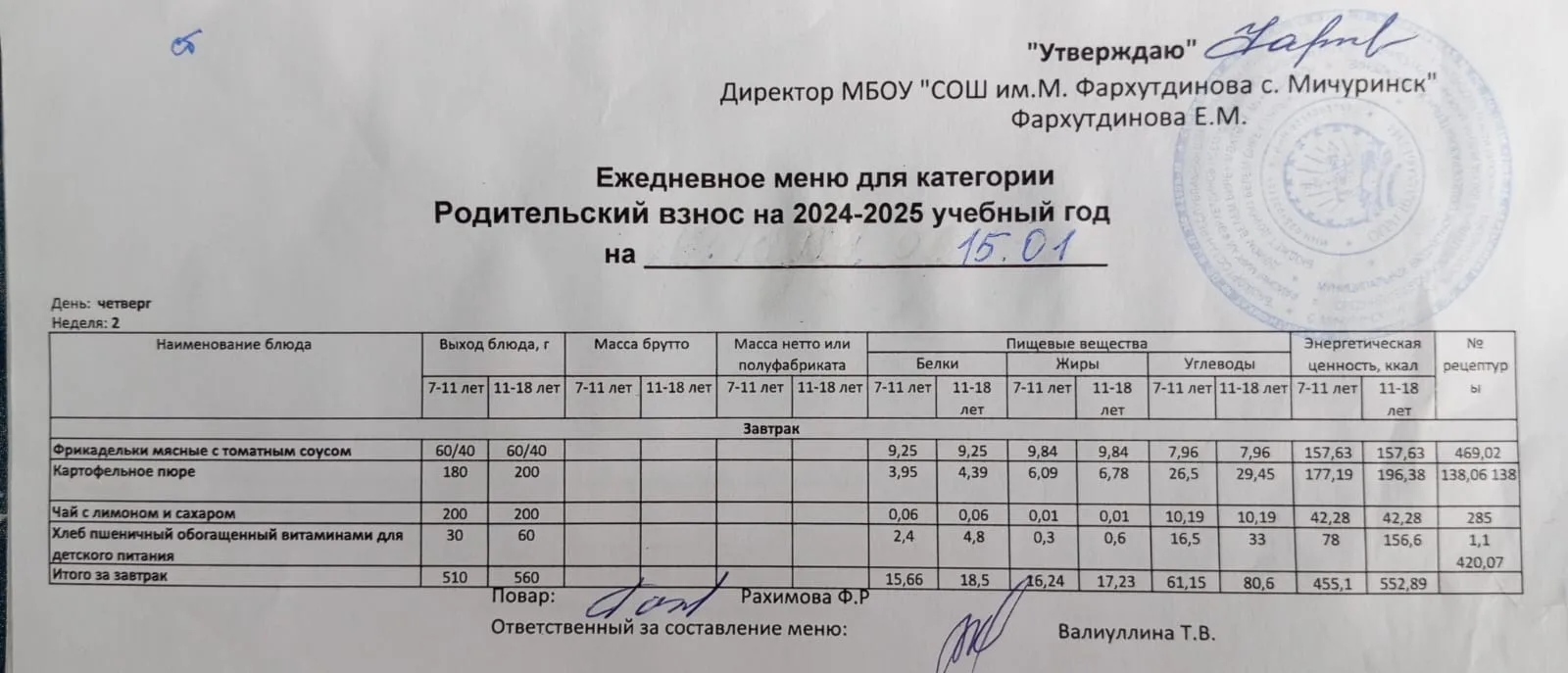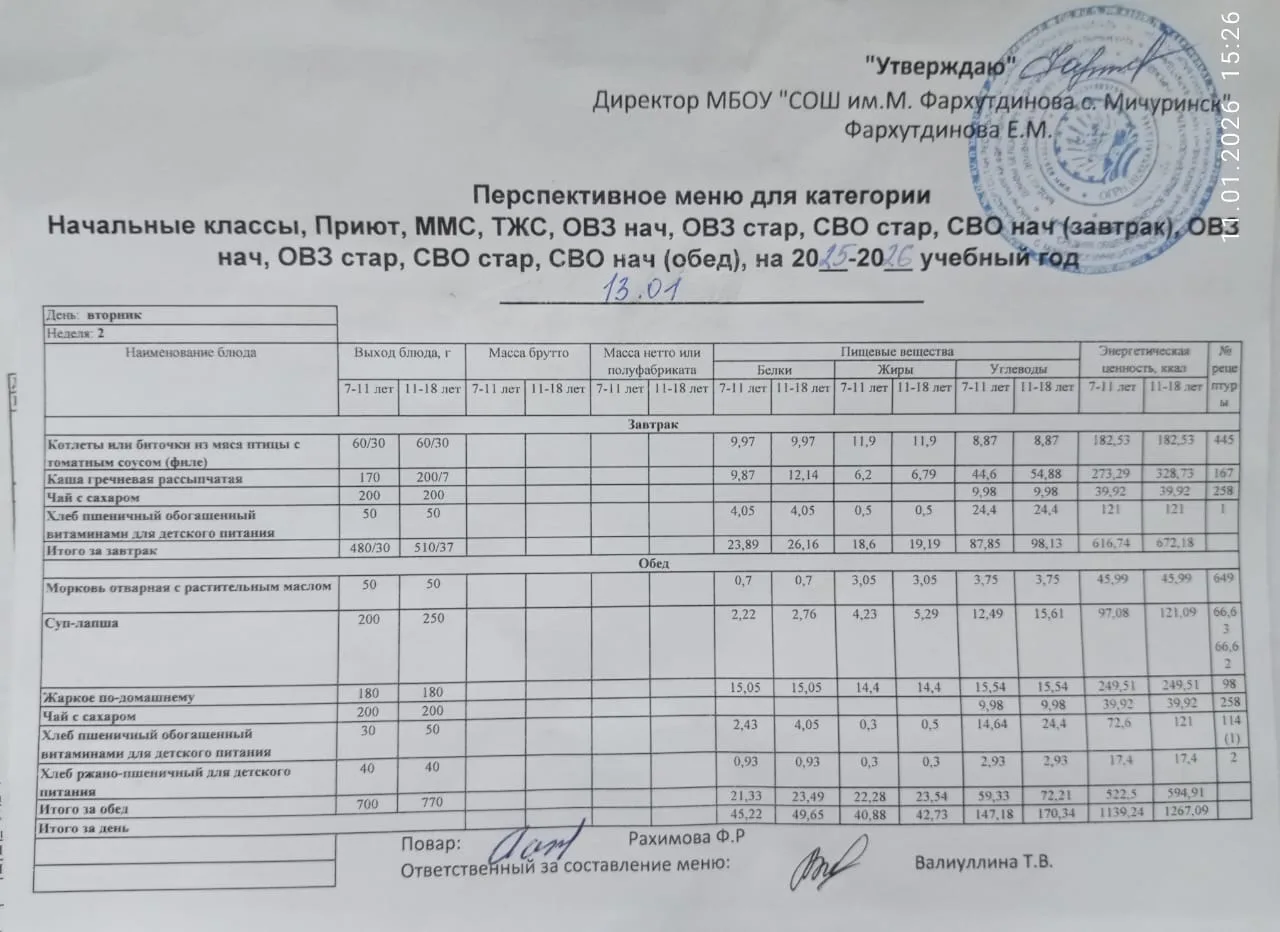 Стоимость школьного питания