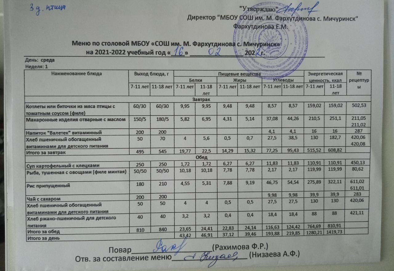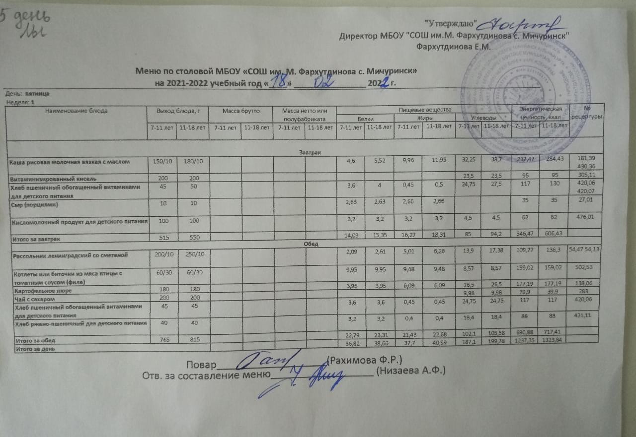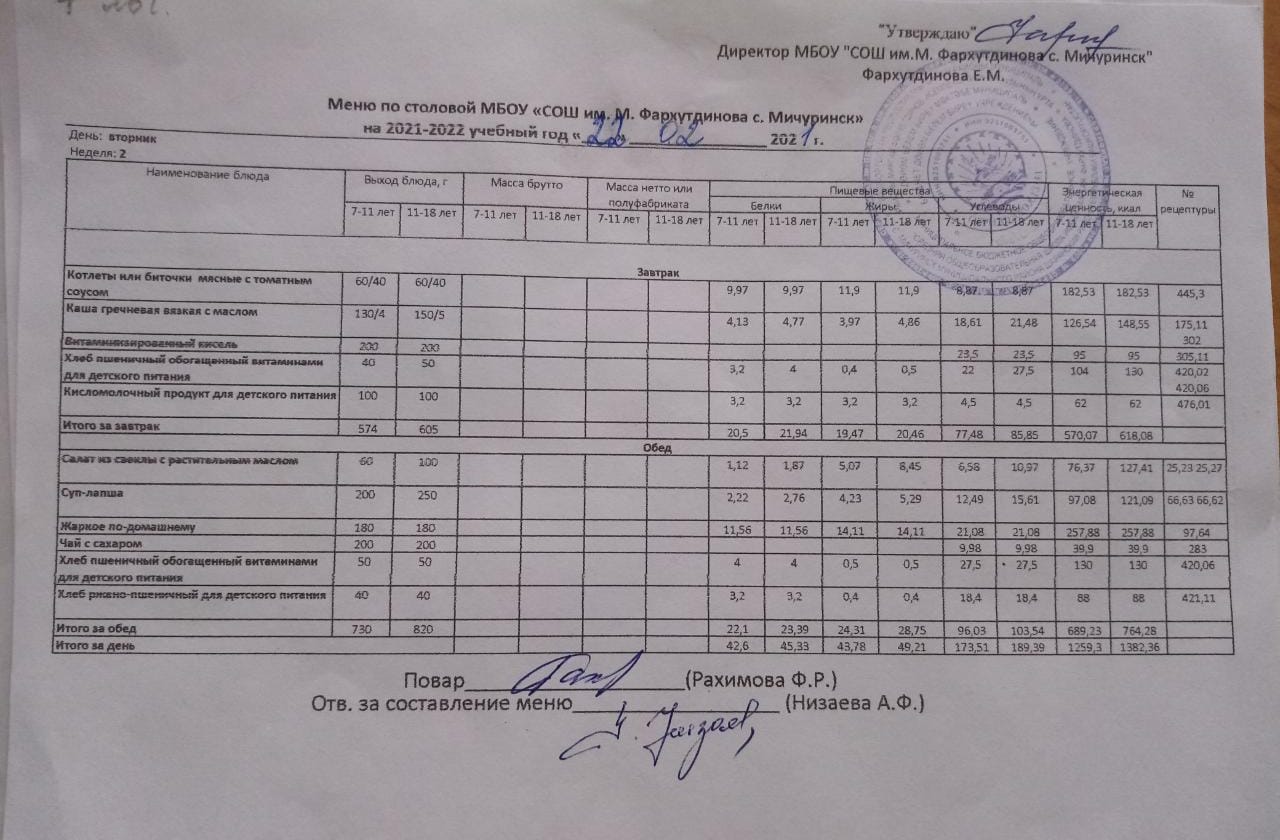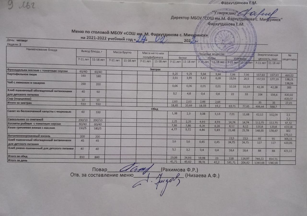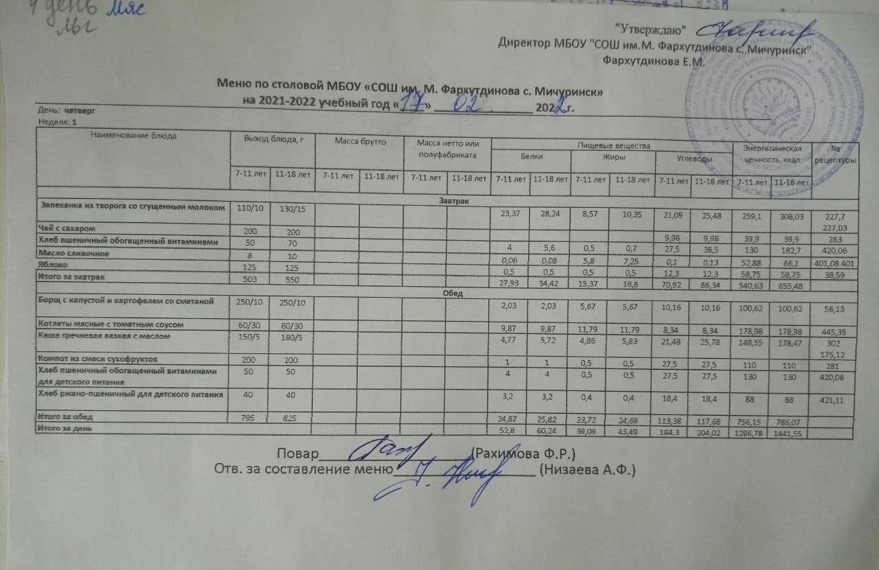 Стоимость школьного питания