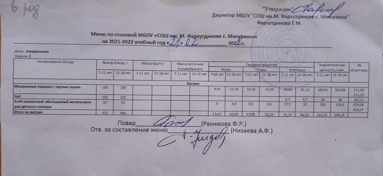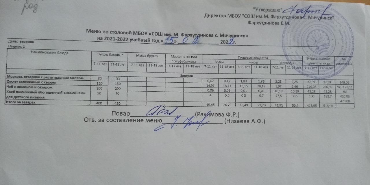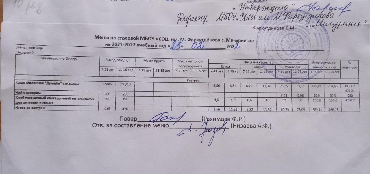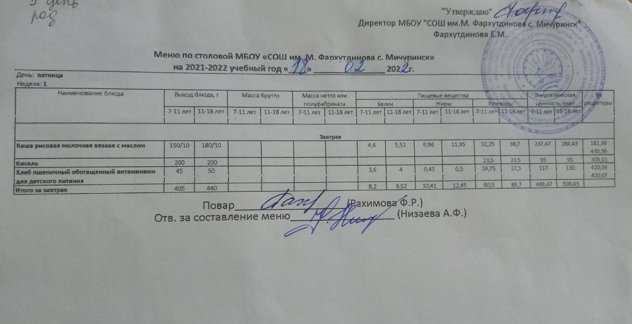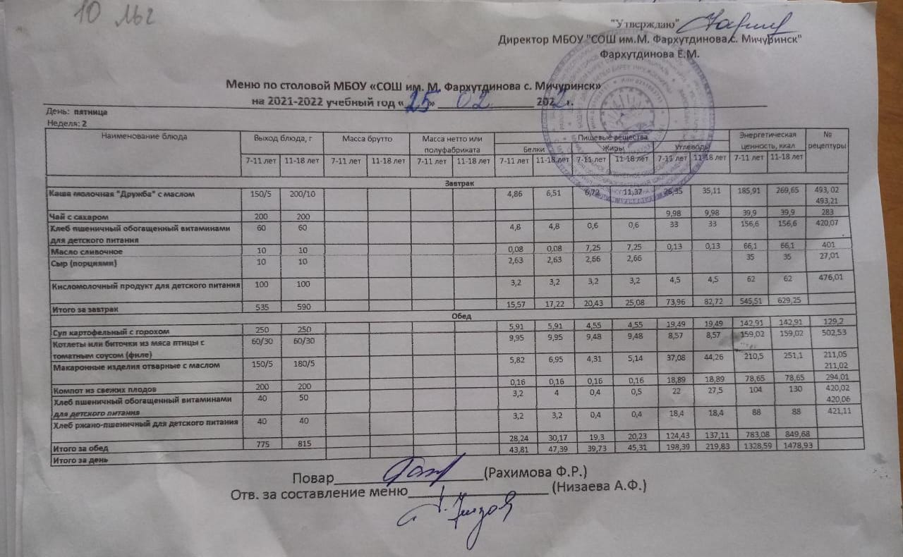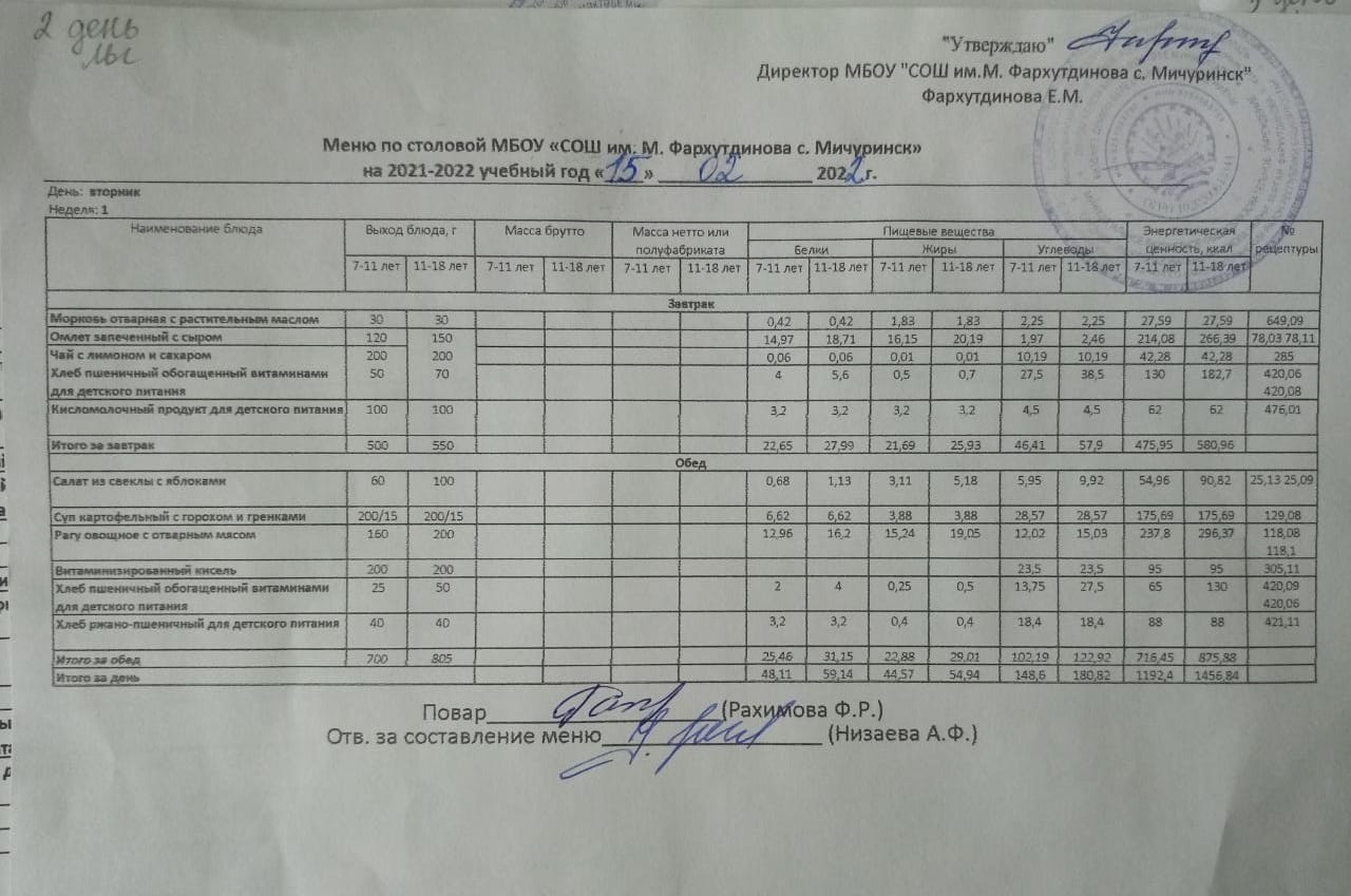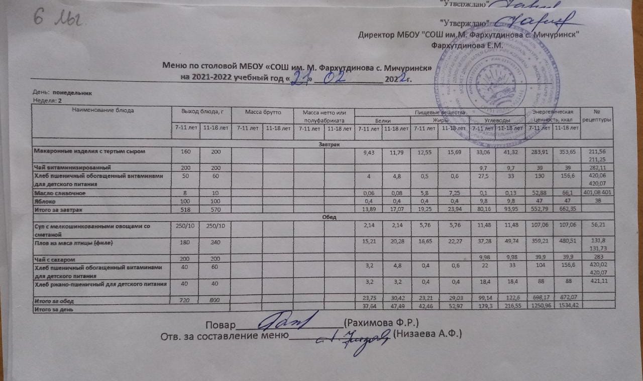 Стоимость школьного питания
