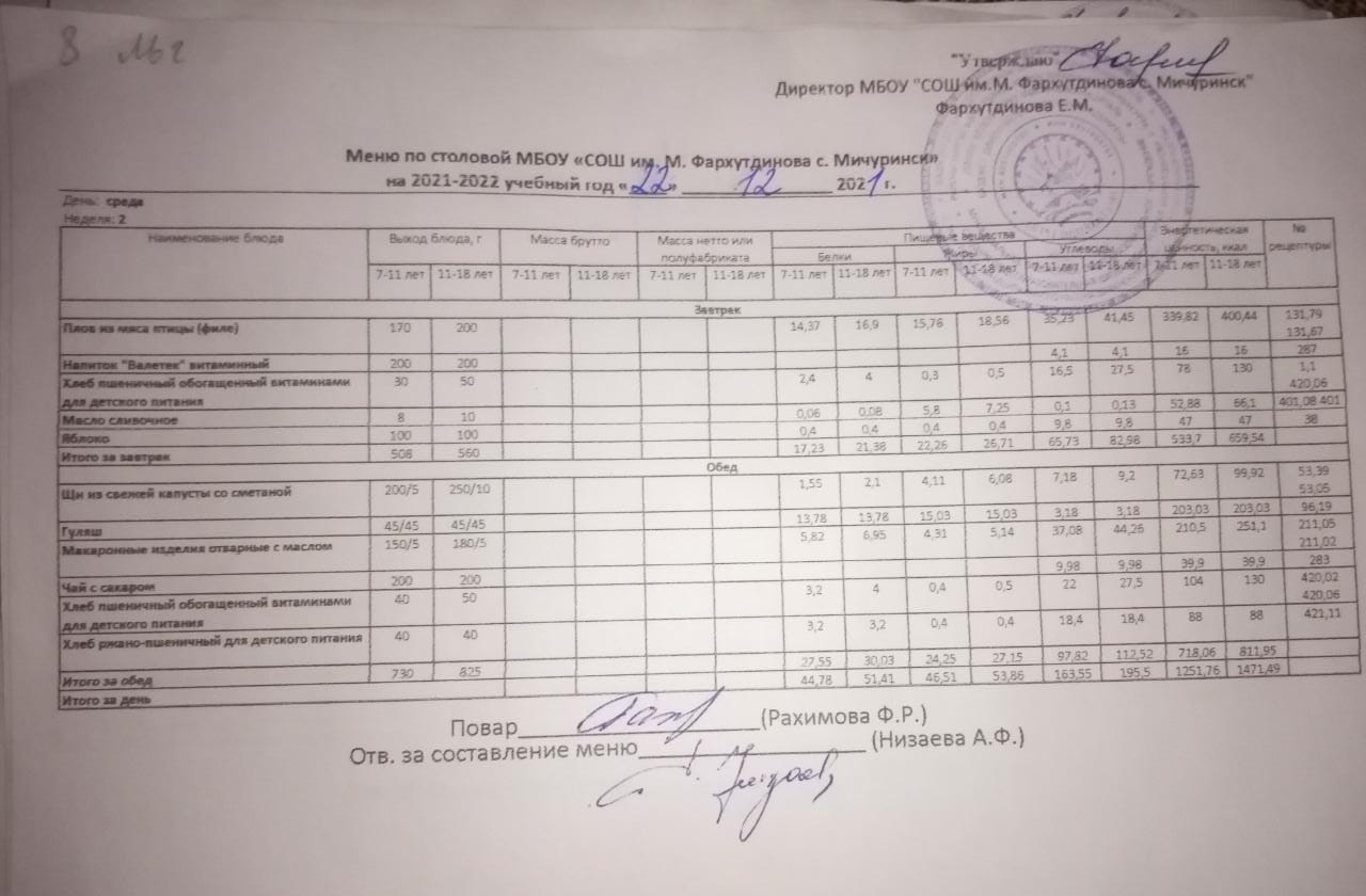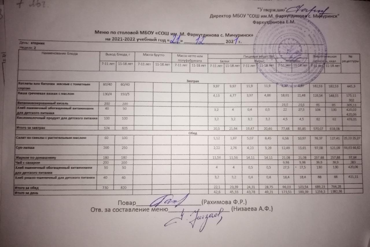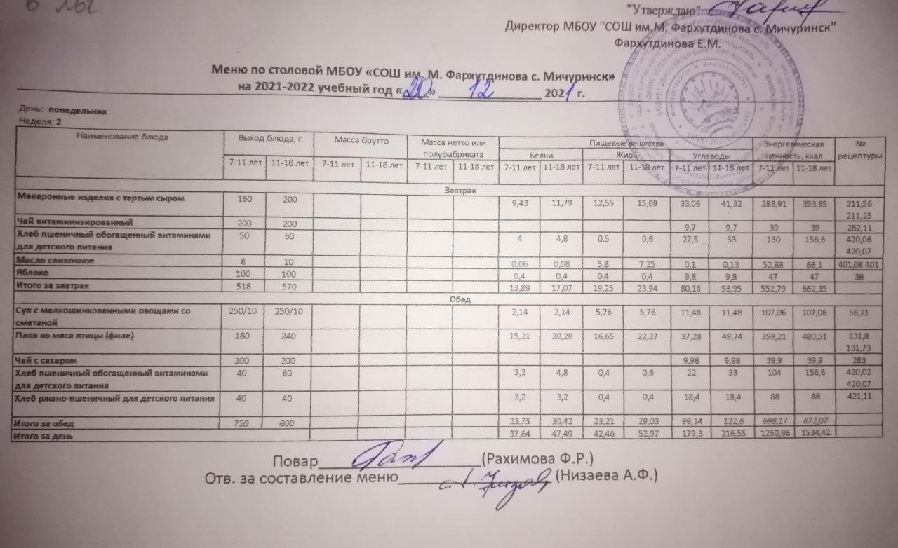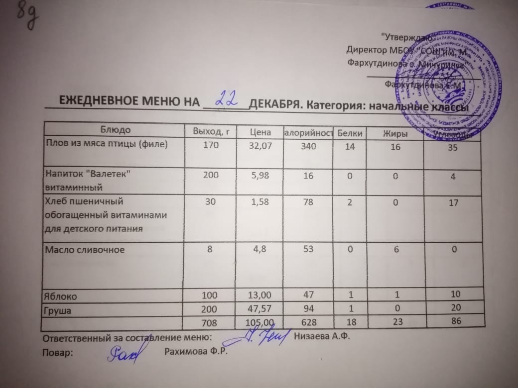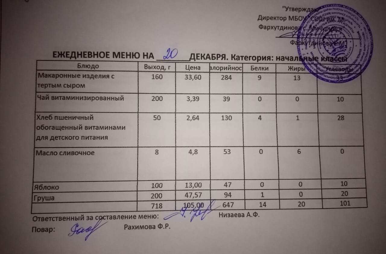 Стоимость школьного питания