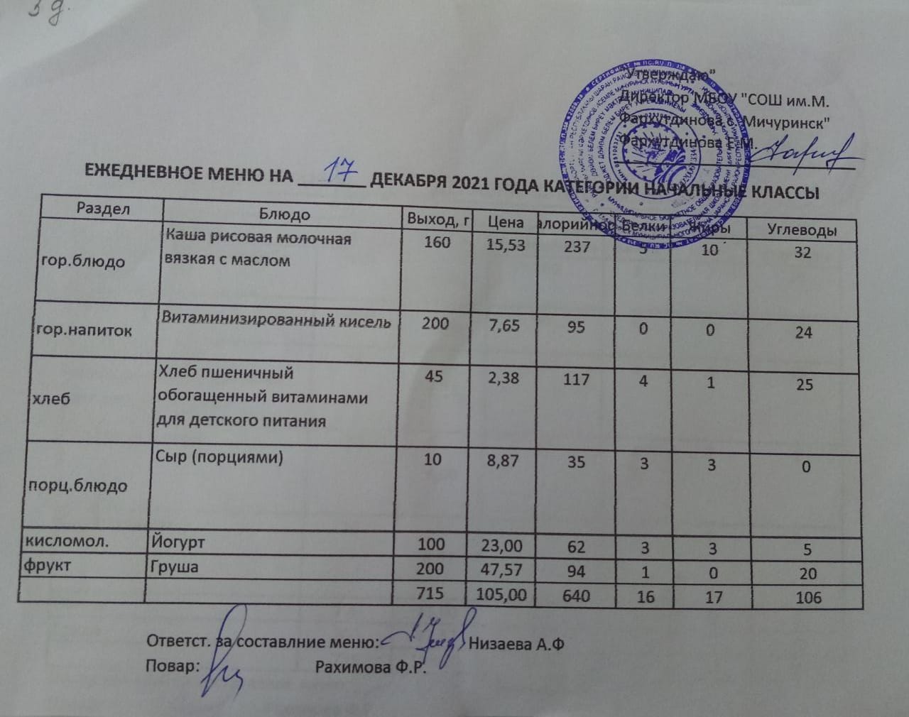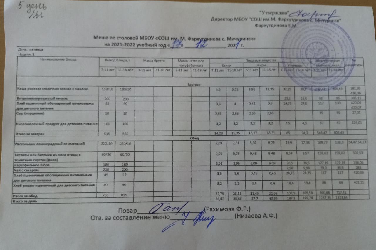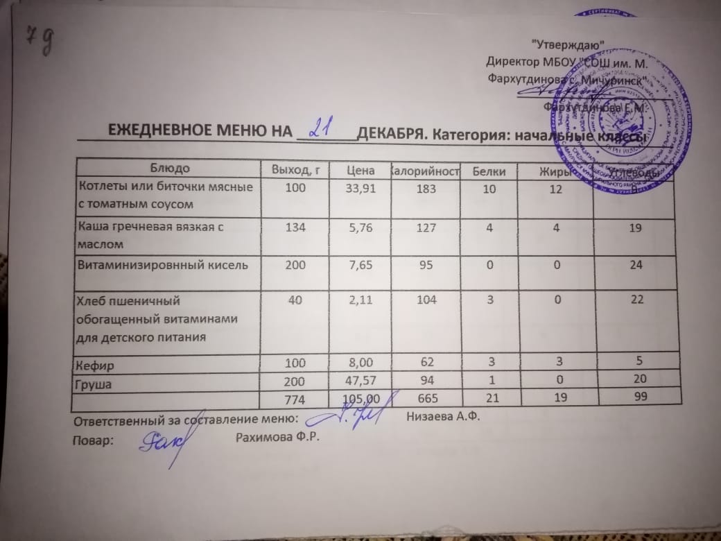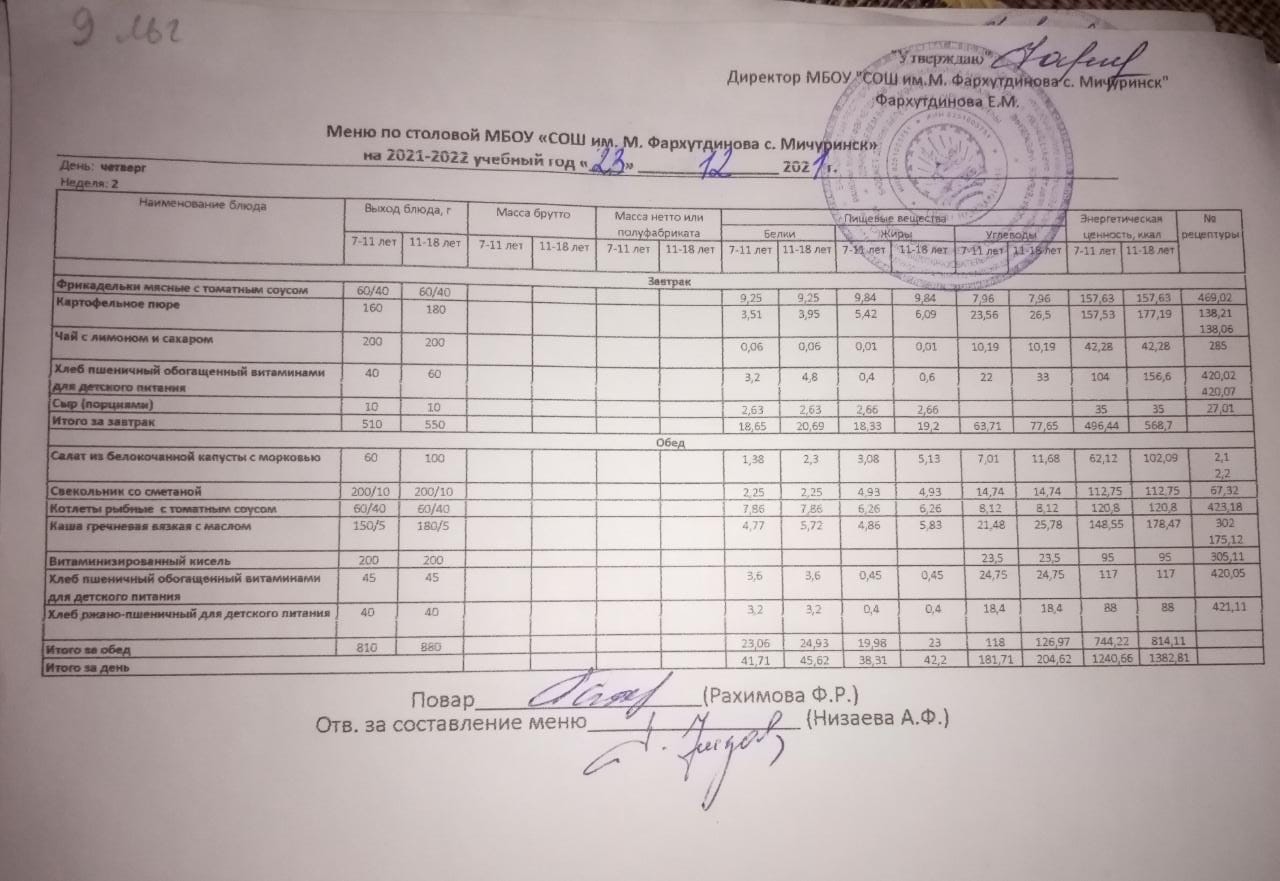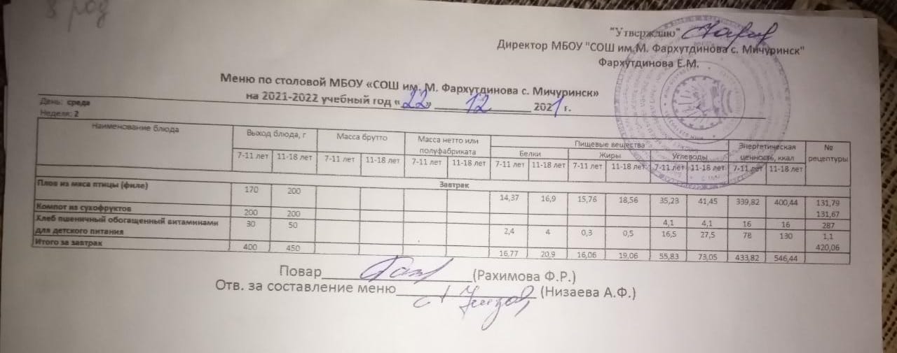 Стоимость школьного питания